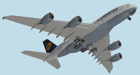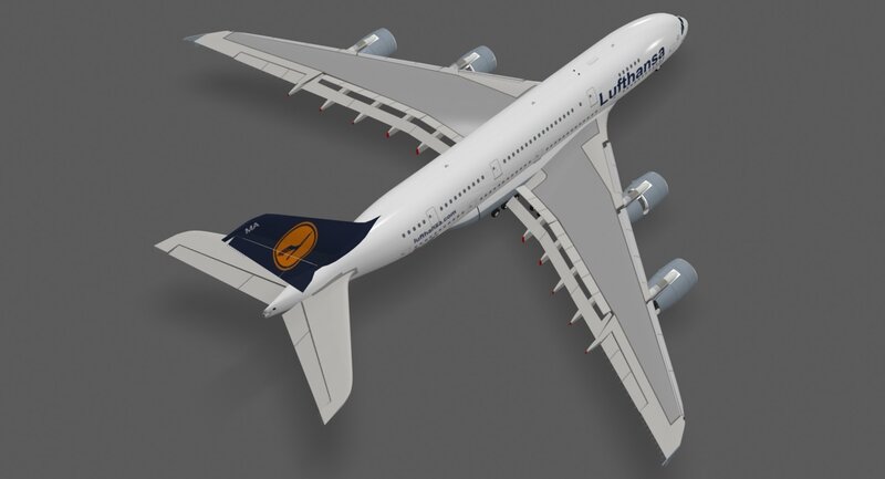 - Detailed 3d model of the Airbus A380-800 in Lufthansa paint scheme.-