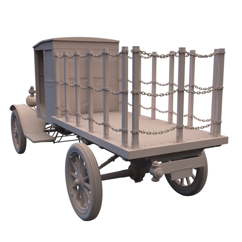 This high resolution 3,263,314 poly CAD model was created in SolidWorks™ from research, field measurements and photographs. It is full-size (1:1) and accurately scaled, with most parts individually modeled. The modeling quality allows for extreme close-ups and rendering. It is ideally suited for hero and foreground shots within early 20th Century period sets and CG’s. There is no motor, only the “basic block” and oil pan that shows under the chassis.