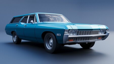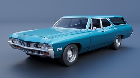 The model includes •Body •Body without hood •Hood •Body divided into 3 parts •Grille •Engine •Interior •Chassis •Wheels •Tires •Windows and glass for headlights and taillights