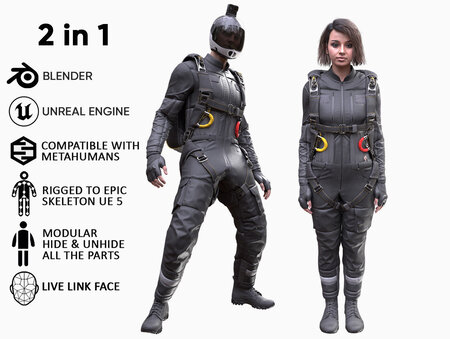 Mens and Womens Skydiving Uniforms - Modular - Rigged 3D Model Collection