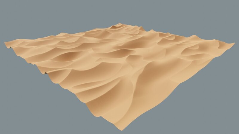 This is a high-poly model of a large sand dune ready to render in Blender with the cycles rendering engine. For those not using blender, just apply the materials (2K color, roughness and normal maps included) and adjust the scale of the maps to more or less 100. You can download the file in .blend, .stl, .obj, and .fbx. The three texture maps are alsoincluded. It contains 996 thousand polygons and 998 thousand vertices, roughly. Optimal for producing cartoons or other animations.