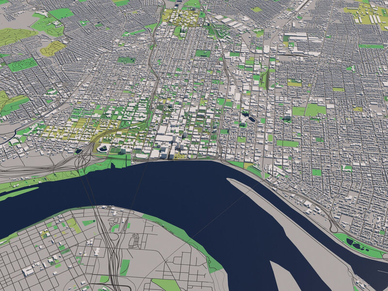 A DETAILED 3D MODEL CITY MAP OF LOUISVILLE, KENTUCKY, USA: