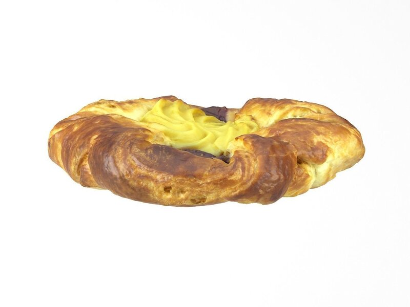 Highly detailed, photorealistic, 3d scanned model of a raspberry vanilla danish pastry . 8k textures maps, optimized topology and uv unwrapped.