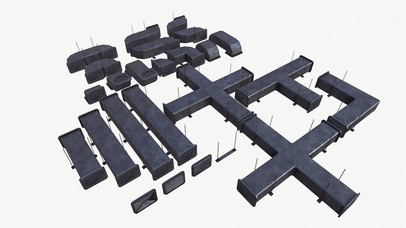 Included ZIP & RAR file formats: -mb -fbx -dae -obj -TGA Low poly: 14064 tris (25 models) TEXTURES: (9 materials) Ventilation_AO Ventilation_DM Ventilation_HM Ventilation_MM Ventilation_NM Ventilation_RM All models have only one set of textures (4096x4096).Your game will be beautiful and optimized at the same time! 25 models will be available to you and 9 types of textures. You can create the configuration that is right for you! Fans can be animated. The scene was modeled using Autodesk Maya 2018. All objects are grouped and named correct for easy selection and control. You don't need a special plugin to open the scene. The entire scene was simulated in real scale. This model is scaled for the real world. Measurement units: centimeters. All materials are named correctly. The model includes a ready-to-play texture. It is very easy to work with him.