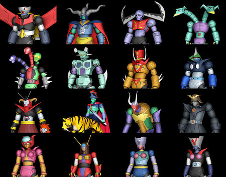 Mazinger Z Ankoku Daishogun Garada K7 Doublas M2 Gelbros J3 Gromazen R9 Belgas V5 Brutus M3 Argos Archduke Gorgon Desma A1 Harkenshumit X9(Only one piece version) Aphrodite A Venus A Diana A Minerva X